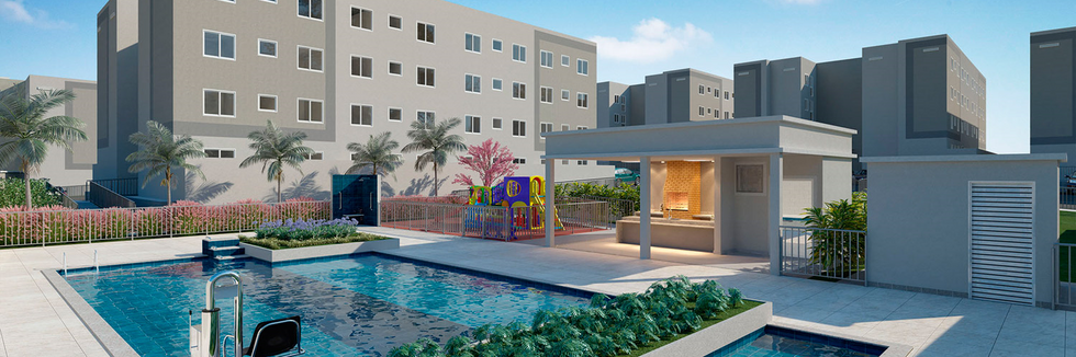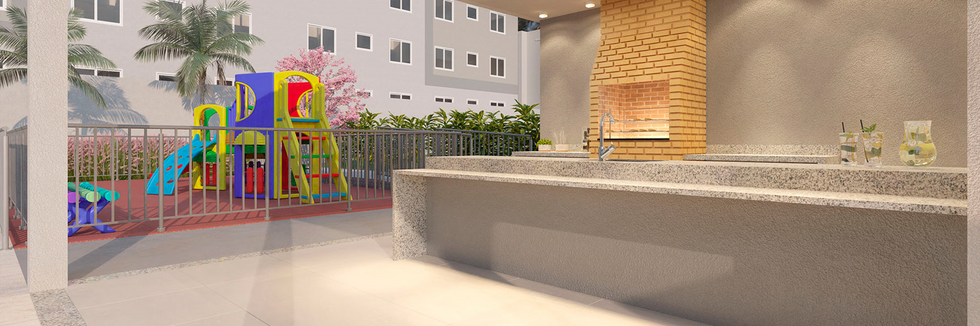 Área de lazer com: ✔ Espaço gourmet com churrasqueira; ✔ Piscina Adulto e Infantil; ✔ Bicicletário e ✔ Playground.