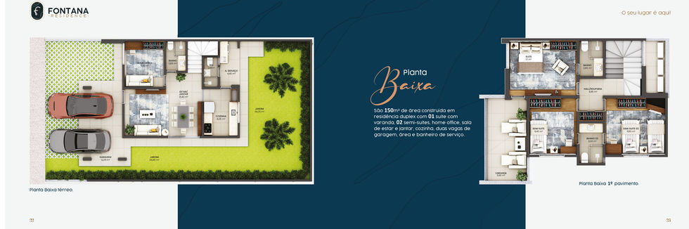 Casas Duplex com 150 m² de área privativa e lote de ✔ 179,79 m² a ✔ 291,07m².